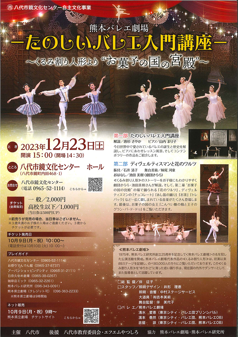 バレエが未経験の人、大歓迎!!クリスマスにご家族やお友達と一緒に、鏡文化センターでバレエを観て、楽しい時間を過ごしませんか! ※詳しくは八代市HP・鏡文化センターHPをご覧ください。