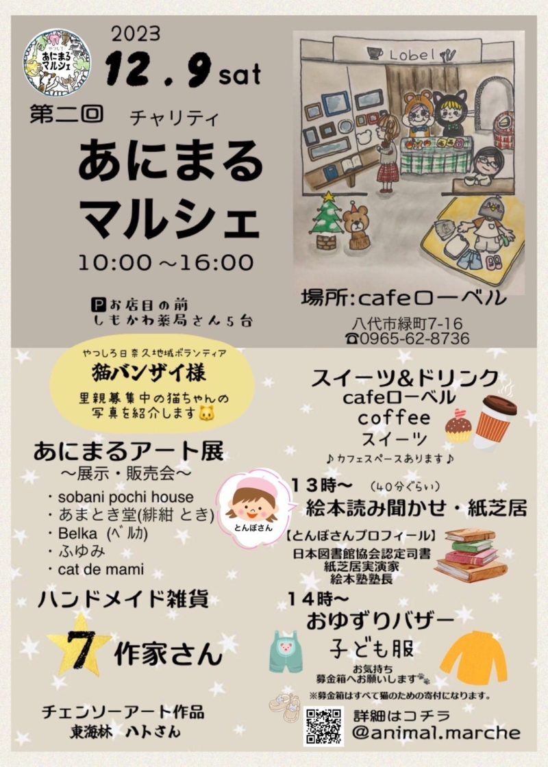 展示中の絵の販売会(〜12/9あにまるアート展)ハンドメイド雑貨、絵本読み聞かせ・紙芝居、チェーンソーアート作品、