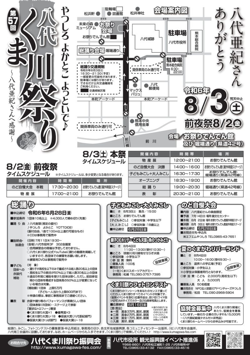 「球磨川」に感謝するとともに、産業の振興を図ることを目的に中心市街地で市民総踊りを開催。