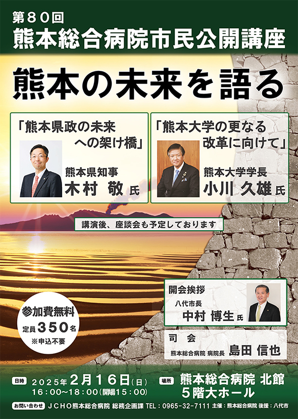 場所:熊本総合病院 大ホール(北館5階)/ 八代市通町10-10 時間:16:00~18:00(受付:15:00~) 参加費:無料(申し込み不要、定員350名)