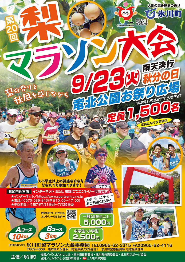 お問合せ:氷川町梨マラソン大会事務局 ☎0965-62-2315