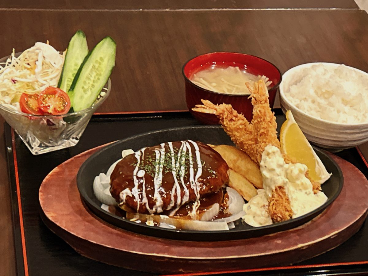 鉄板ハンバーグ&エビフライ