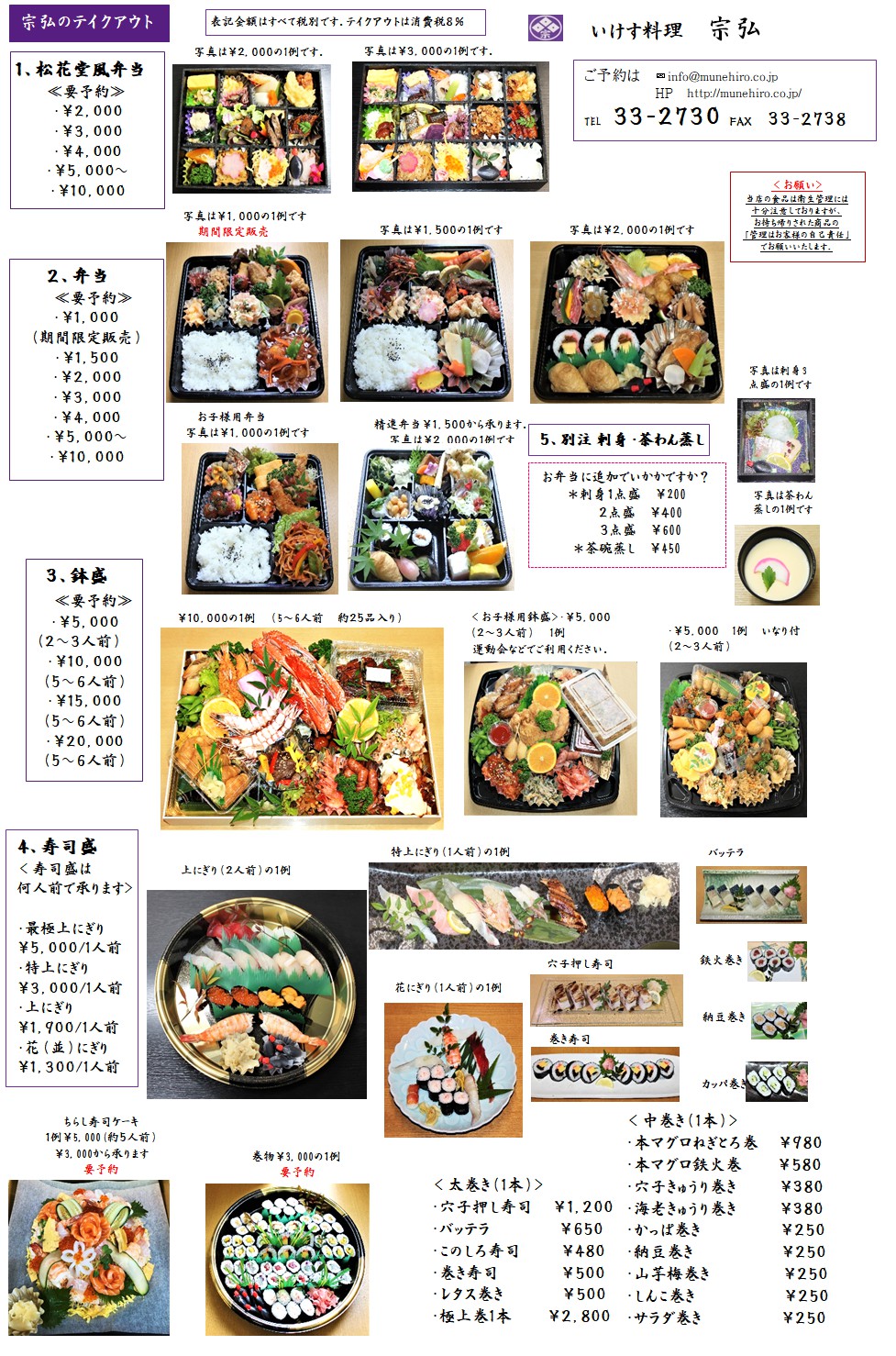 メニューにある商品はほぼテイクアウトできます。 配送も可能です。
