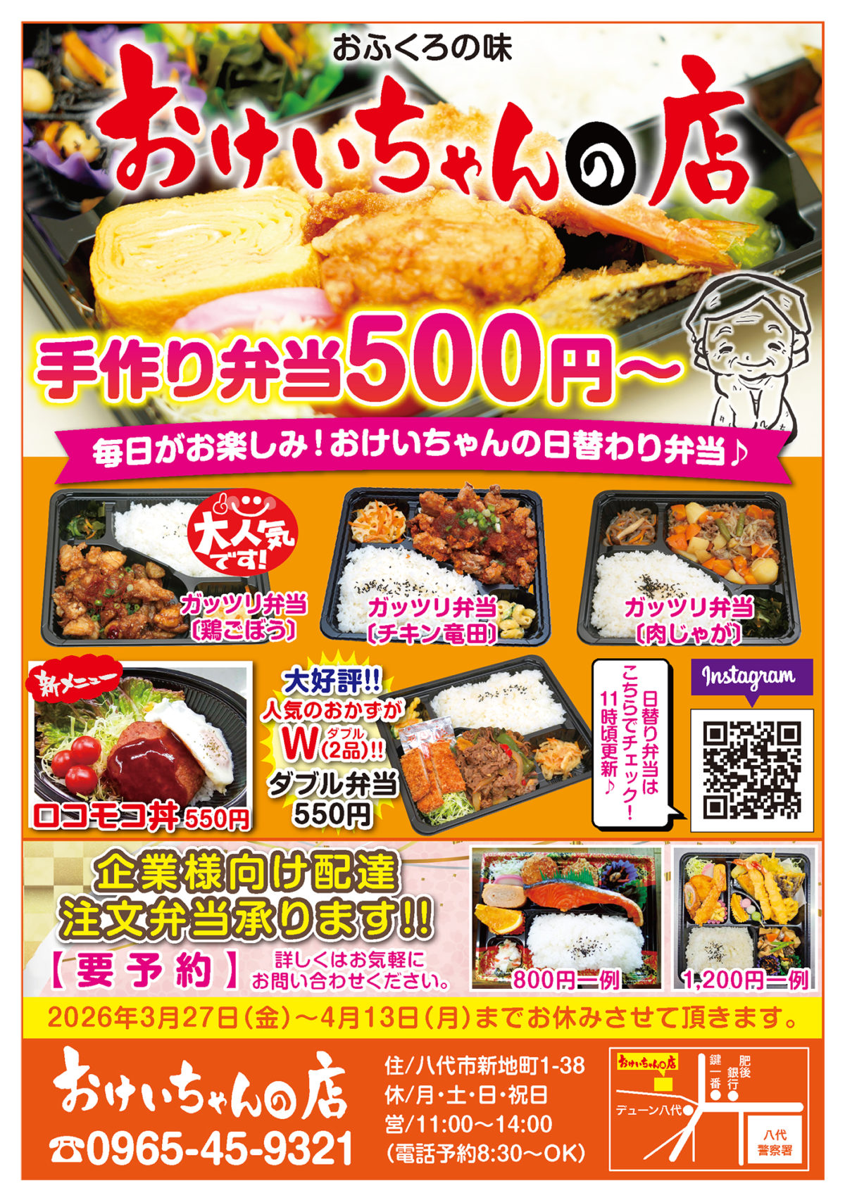 ボリューム満点の手作り弁当が500円~!ご予算に応じた注文弁当も承ります